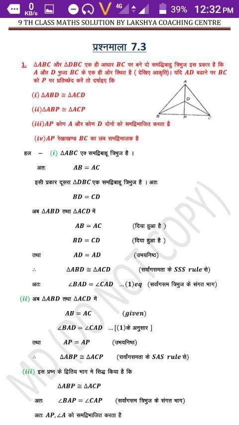 7. त्रिभुजों की सर्वांगसमता एवं असमिकाएं