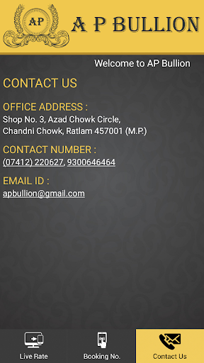 Anil Purohit Bullion Company juga dikenal sebagai A.P. Bullion telah menetapkan tolok ukur yang berbeda dalam perdagangan logam mulia seperti emas dan perak di kota emas bersejarah Ratlam.Perusahaan Bullion sangat dipercaya untuk berurusan dengan dan menggambarkan dirinya sebagai merek layanan kepada pelanggan yang terbuka untuk semua.Menyediakan layanan berharga mereka dan memenangkan kepuasan pelanggan dalam perdagangan sejak 10 tahun dan mencerminkan nama yang berharga di pasar.Menjadi Bullion Utama di kota dengan menetapkan standar memberikan layanan yang berharga kepada pelanggan dan segera perusahaan berada pada ekspansi ke perhiasan bermerek dengan sekali lagi melemparkan gambar epik di bidang-bidang yang berharga.Menjadi perusahaan yang memfasilitasi investasi dalam logam mulia yang mengkhususkan diri dalam batangan emas dan perak dengan tim kerja yang efisien dan berpengalaman untuk memenangkan kepuasan pelanggan.Terlepas dari Bullion dan Jeweller, perusahaan juga berurusan dengan pembangunan keuangan, perumahan, perdagangan MCX dan konstruksi properti.