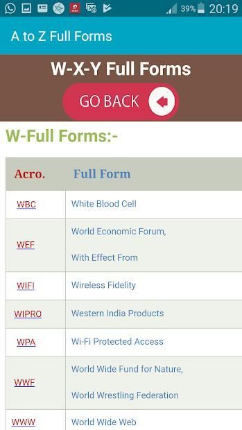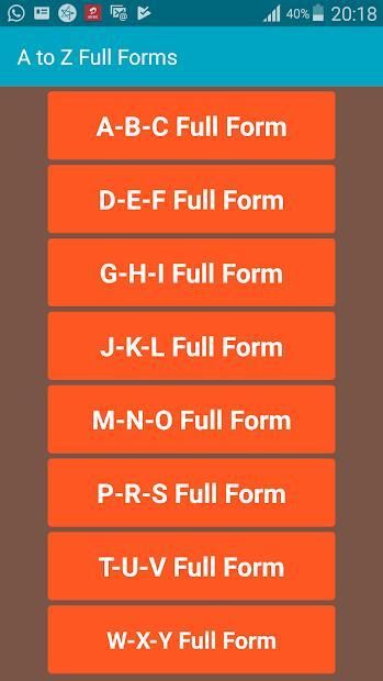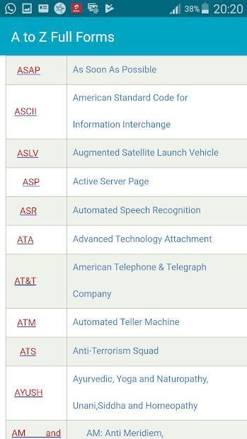 A to Z Full Forms provide you all type of acronyms full forms. This is the library of all type (A to Z) full form with friendly interface, small size, easy to use absolutely free app. This app provide part by part (A to Z) all type of Acronyms to Full Form, so easily get what do you want to know about full form. This app basically create for India, so you get Indian all type of full forms and yes very helpful in examination and get knowledge about shortcut. We often use some words in our daily life, but we don't know their full forms.