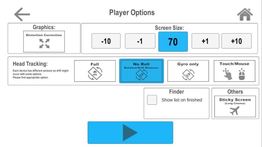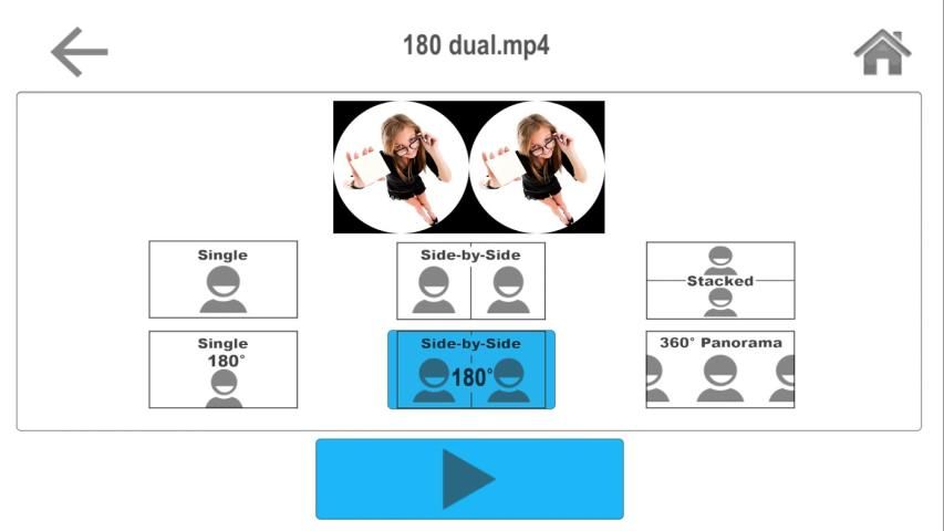 - Modus video akan terdeteksi dengan nama file dengan bijak. Misalnya. "Example_180_sbs.mp4" akan dimainkan side-by-side 180 modus.