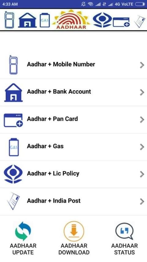 Dengan menggunakan APP ini, seseorang dapat menghubungkan jumlah Aadhaar ke semua layanan penting yang sangat mudah.