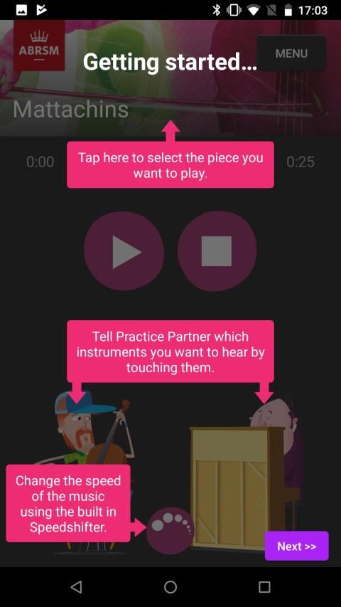 Mitra Praktek Cello hadir dengan contoh karya dari Kelas 1 Potongan Ujian ABRSM BARU 2020-2023, memungkinkan Anda untuk mengevaluasi aplikasi sebelum membeli bagian apa pun. Dalam aplikasi Anda dapat membeli: