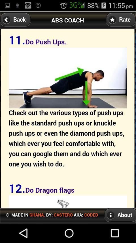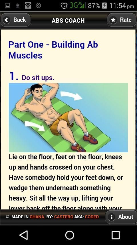 Abs Pelatih App adalah software yang dirancang untuk membantu Anda mendapatkan ABS alami dan permanen (SIX-PACK) di rumah tanpa pelatih pun kapan saja pada telepon Anda atau Tablet.