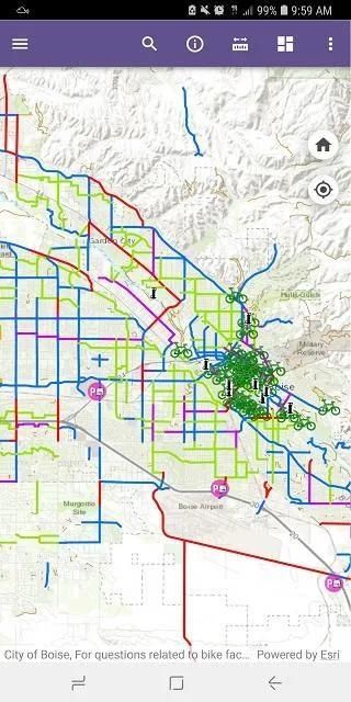 Aplikasi ini menyediakan koneksi ke Peta Sepeda Ada County Highway District. Peta sepeda memungkinkan penggunanya untuk mencari stasiun udara dan perbaikan sepeda, lokasi Greenbike, lokasi park-and-ride, fasilitas sepeda ACHD dan jalur, jalur & jalur hijau. Selain itu, mengidentifikasi rute bus naik lembah, halte bus naik lembah, sekolah, dan taman.