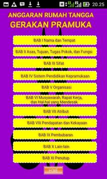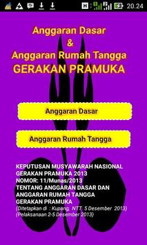 Aplikasi ini berisi tentang Anggaran Dasar dan Anggaran Rumah Tangga Gerakan Pramuka berdasarkan hasil Keputusan Musyawarah Nasional (Munas) No:11/Munas/2013 Tahun 2013 di Kupang, NTT 2-5 Desember 2013.