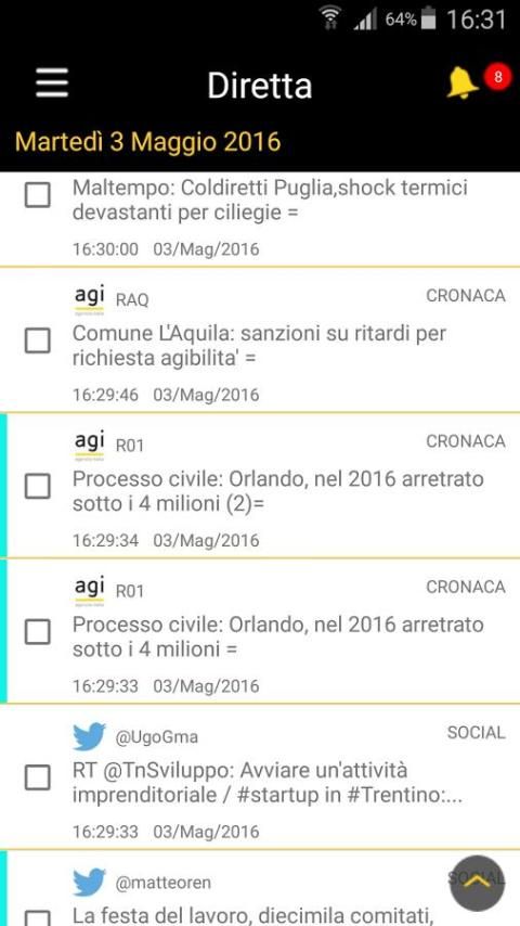 Dengan aplikasi ini Anda dapat melihat arus berita di konsentrator AGI Browser dan menggunakan beberapa kustomisasi dan navigasi fitur: Simple Cari berdasarkan kata kunci; Disimpan Pencarian dan filter dengan parameter canggih (kategori, lembaga, tanggal ...); pemberitahuan disesuaikan dengan pesan suara dan spidol berwarna; Kirim oleh Email satu atau beberapa berita.