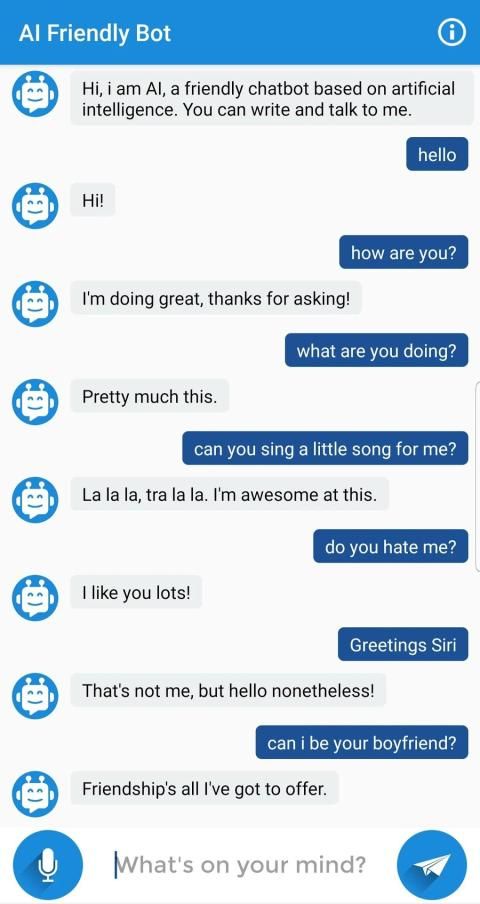 So this app as well as being a friendly bot is also similar to Alexa, Siri, Bixby, Google Assistant and other virtual assistants, but needs time to improve the answers.