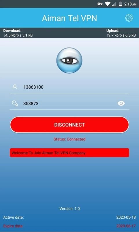 Aiman Tel VPN adalah Terowongan HTTP Berkecepatan Tinggi Ringan Untuk Android