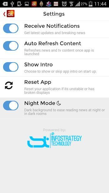 The app provides a comprehensive list of AIT programs and broadcast schedule. The TV Program section enables users to add programs to their device calendar; Now you can always catch your favorite shows as you will get a reminder before your show starts.
