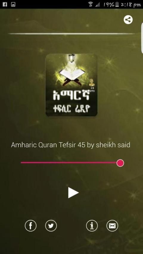 9Apps is the free store of application, 20,000+ users downloaded AMHARIC TEFSIR QURAN RADIO latest version on 9Apps for free every week! More apps are free download here! This hot app was released on 2016-01-23. You can find more interesting apps at 9Apps!