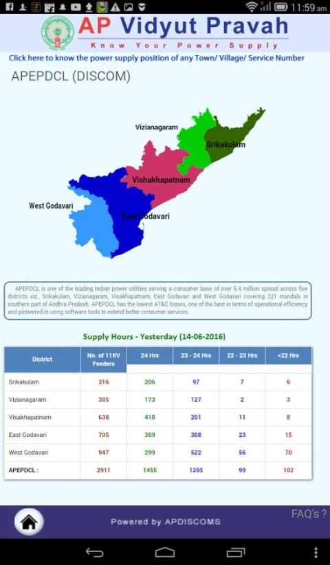 Sebuah antarmuka user friendly, berdasarkan peta geografis dari Andhra Pradesh, memfasilitasi semua konsumen / stakeholder dalam visualisasi dari ketersediaan daya dan kekuatan posisi pasokan di DISCOM / Kabupaten / Kota / Desa / Layanan tingkat Connection.