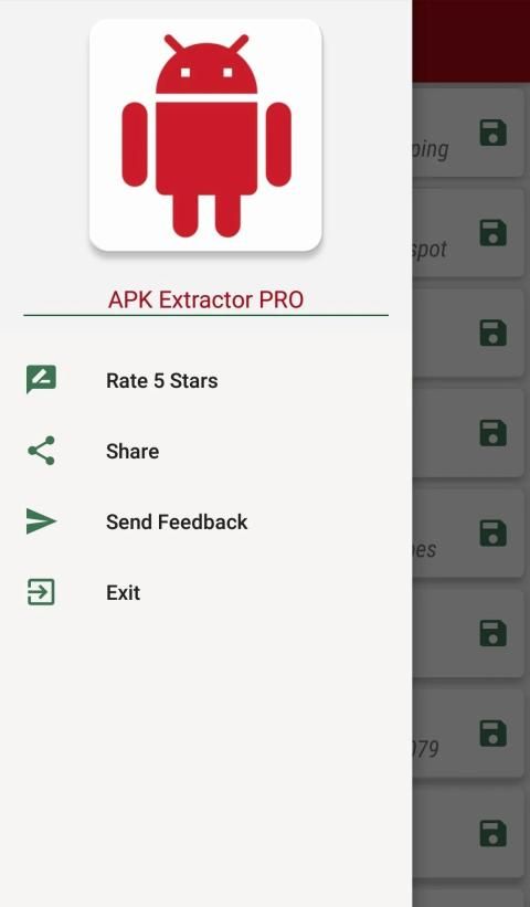 APK Extractor PRO memungkinkan pengguna untuk mengekstrak apk, membuat cadangan dari aplikasi yang dipilih atau semua dan memungkinkan pengguna untuk berbagi aplikasi.