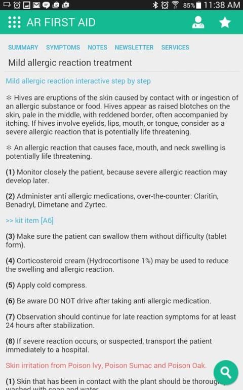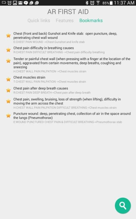 + Ranking penekanan pada Medis First Aid dan kondisi mengancam kehidupan. App adalah hasil dari sekitar satu juta pencarian real time dilakukan. Di luar ruangan, rumah dan topik medis mobil. + Konektivitas internet tidak diperlukan, setelah sinkronisasi awal untuk aplikasi untuk bekerja.