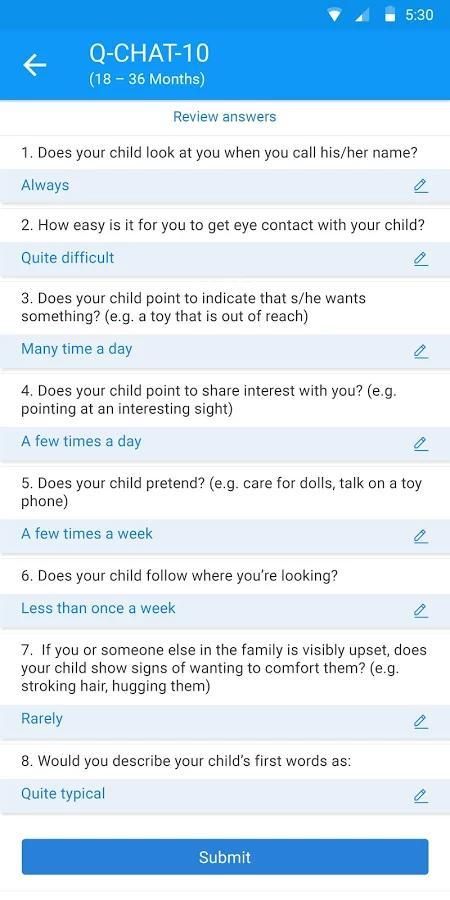 Aplikasi ini semata-mata untuk tujuan penelitian dan tidak untuk penggunaan komersial. Aplikasi ini berisi Autism Spectrum Disorder (ASD) tes untuk memungkinkan orang tua, pengasuh, dan peneliti akademis mengaksesnya. tes ini tidak alat diagnostik bukan mereka tes perilaku yang hanya menunjukkan sifat-sifat autis. Aplikasi ini dapat didownload secara bebas dan didistribusikan tetapi tidak dapat digunakan untuk keuntungan finansial. Aplikasi ini dikembangkan oleh Dr Fadi Fayez Thabtah di NMIT.