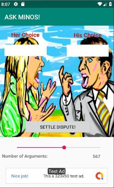 Cukup masukkan dua pilihan Anda, pilih sejumlah argumen, kemudian SETTLE DISPUTE!