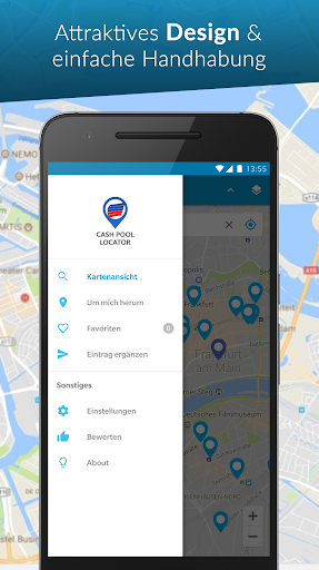 Selain itu, Anda dapat dengan cepat dan mudah melihat semua mesin di seluruh Jerman di peta dan memungkinkan Anda menavigasi langsung ke tujuan berdasarkan permintaan. Dan jika Anda mau, Anda juga akan melihat informasi tambahan, seperti jam buka atau foto. Ini benar-benar tidak lebih mudah!