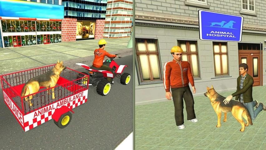 ATV Quad Bike Animal Transport Simulator helps you to become the life saver driver of pet animals and wild animals by giving them a rescue in new home and hospitals & by successfully dropping them to their new destination in the ATV Quad bike Animal transporter and dog games. When you drop pet dog to the new home, then he will do a dance for you. Your ATV Quad bike will perform as an emergency ambulance for animal rescue mission. This will test your ATV Quad bike driving skills to the maximum in ATV Tuk Tuk Rickshaw Animal Transport. There is a chaotic scene in the city as the dog and other safari animals like lion, tiger, buffalo, bear and more has gotten injured due to an accident. Take all the injured animals in ATV Tuk Tuk Rickshaw Animal Transport. You will have to drive your ATV Quad Bike Animal Transport Simulator or Trolley ambulance to the accident spot as fast as you can while avoiding the obstacles and hindrances.