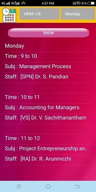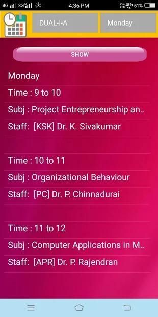 This app was developed for Students and Staff to accessing class time table in the Department of Business Administration, Annamalai University