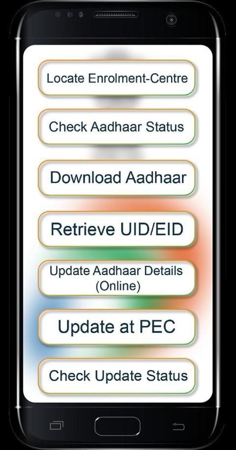 Aadhaar adalah aplikasi mobile resmi yang dikembangkan oleh Unique Identification Authority of India (UIDAI) untuk menyediakan antarmuka bagi Pemegang Nomor Aadhaar untuk membawa informasi demografis mereka. Nama, Tanggal Lahir, Jenis Kelamin & Alamat beserta foto yang dikaitkan dengan Nomor Aadhaar mereka di ponsel pintar.