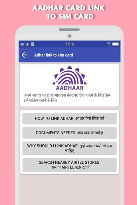 Aplikasi ini menyediakan info lengkap tentang bagaimana menghubungkan Adhar ke kartu sim dan whats biaya untuk proses ini?