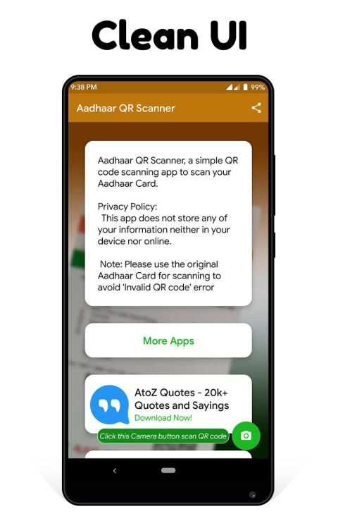 Download and enjoy our service, 20,000+ users downloaded Aadhaar QR Scanner latest version on 9Apps for free every week! It is simply to learn how to use it. This hot app was released on 2019-06-24. Find out more android software you're looking for at 9apps.com