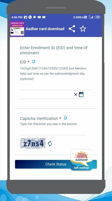 aadhar card status