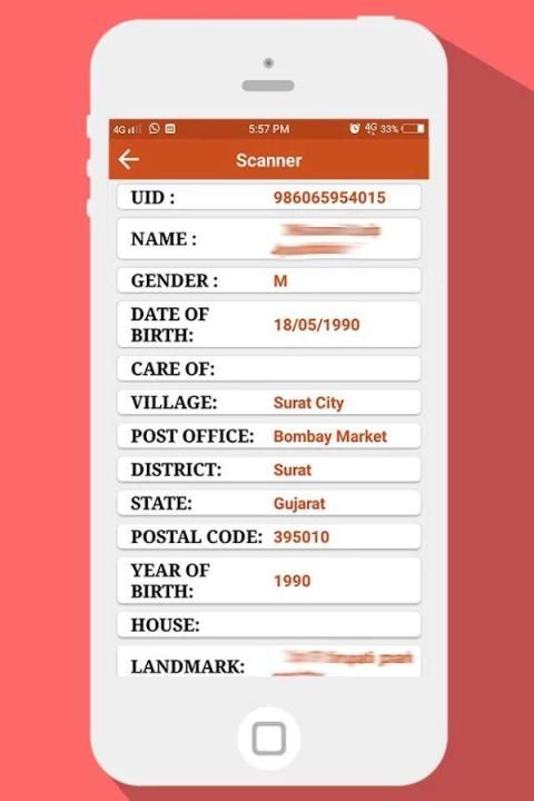 Memindai kartu Aadhar Anda QR-Code dan mendapatkan semua rincian mAadhaar di ponsel Anda sama Unik Identifikasi Authority of India (UIDAI) memberikan antarmuka untuk Pemegang Aadhaar Nomor untuk membawa informasi yaitu demografi mereka. Nama, Tanggal Lahir, Jenis Kelamin & Alamat bersama dengan foto sebagai dikaitkan dengan Nomor Aadhaar mereka di ponsel pintar.