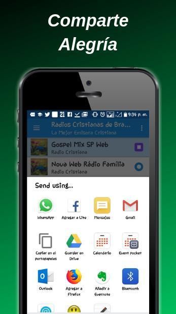 Anda dapat berbagi lagu, aplikasi hebat ini memberi Anda kesempatan untuk berbagi khotbah yang Anda dengarkan, dengan teman dan keluarga Anda dan mengundang mereka untuk tersenyum dan memiliki semangat yang baik.