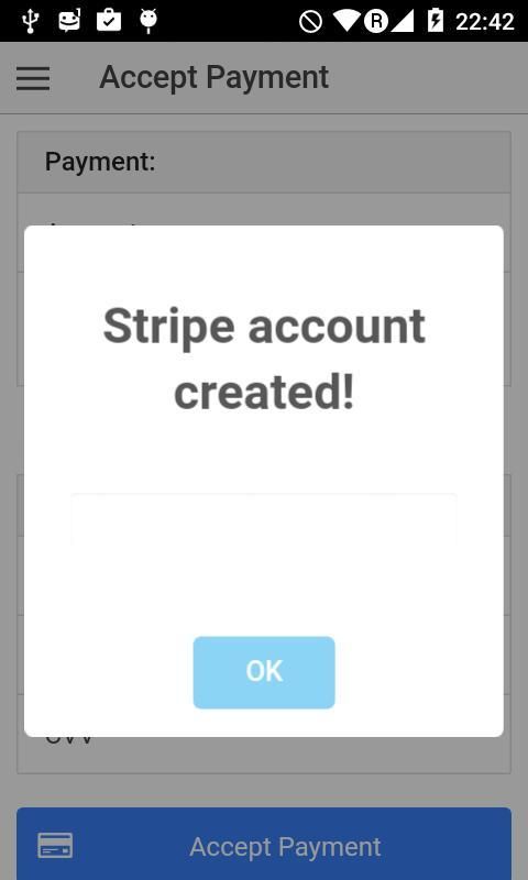 Menerima pembayaran kartu kredit melalui ponsel atau tablet Android, cukup membuka aplikasi ini, dan Anda akan diminta untuk membuat Akun Stripe - Stripe adalah salah satu perusahaan pengolahan kartu kredit terbesar di dunia