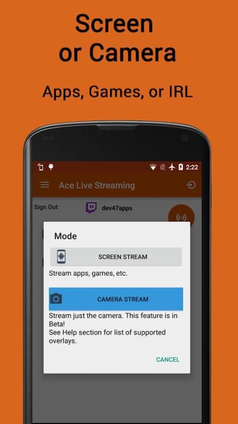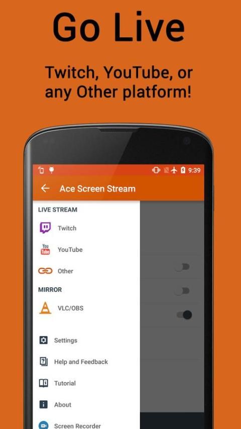 Ace Hidup Streaming memungkinkan Anda tinggal streaming, atau cermin untuk PC, kamera atau seluruh layar.