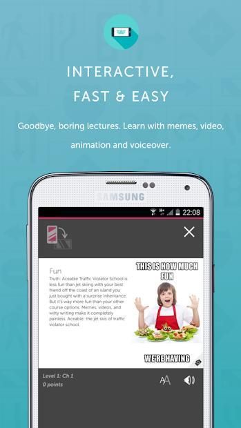 Tidak seperti beberapa aplikasi yang hanya panduan belajar, Aceable adalah pengganti penuh negara-hukum dalam-kelas Drivers Ed, menyediakan semua tentu saja bekerja untuk mendapatkan lisensi izin dan driver