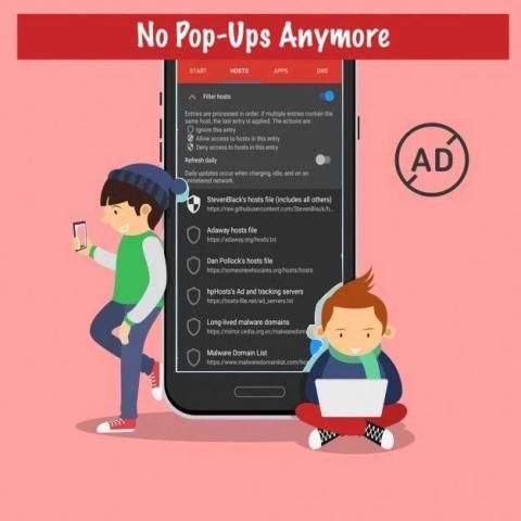 Blocks pop up and pop under ads in the devices.