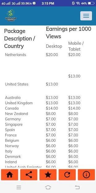 Addlinkearn adalah situs web URL Shorterner berbasis Indian + pakistan. Ini adalah salah satu Shorterner URL pembayaran paling tepercaya dan paling tinggi. Bagian terbaiknya adalah Anda dapat memilih untuk menarik Mingguan Harian atau Bulanan. Anda juga mendapatkan beberapa opsi penarikan seperti Paypal, Banktransfer, Skril, Mobicash, Easypesa, dll. Tautan singkat bukan satu-satunya cara untuk menghasilkan uang dengan Addlinkearn, Anda juga dapat mengundang pengguna baru. Untuk setiap pengguna yang diundang, Anda akan menerima 20% dari pendapatan mereka, itu berarti jika teman Anda mendapatkan $ 100, maka 20% dari jumlah total akan ditambahkan ke akun addlinkearn Anda. Bukan itu saja, berikut beberapa fitur tambahannya: