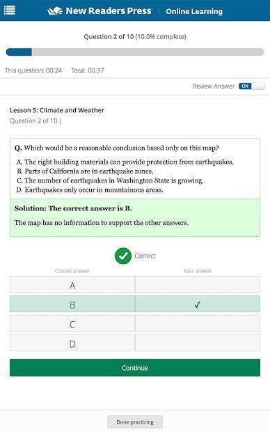 • Short lessons with targeted instruction, vocabulary building, guided practice and skills practice.