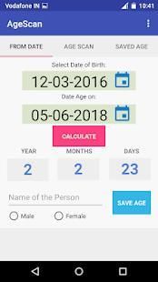 Setelah menghitung usia Anda, Anda dapat menyimpan usia dengan tanggal lahir dengan memasukkan nama dan jenis kelamin. Dan juga Anda dapat mengatur usia Anda disimpan - dapat menghapus, mencari berdasarkan nama.