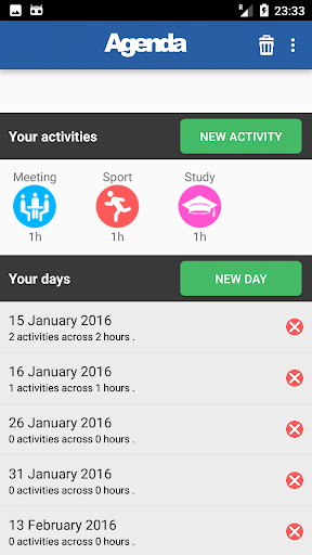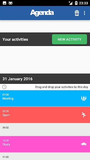 create new new activities and new days and then drag and drop the activity in a specific hour of a day !