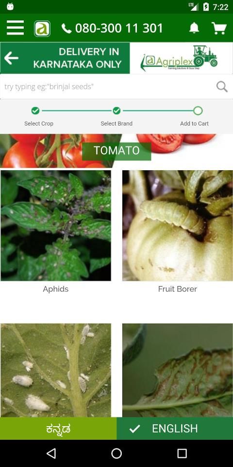 Untuk pertama kalinya, Petani mendapatkan pilihan untuk memilih berbagai BENIH kualitas, PUPUK, PESTISIDA Top Brands dari aplikasi mobile kami. Kapan saja, Petani juga dapat menghubungi pusat HelpPoint kami 080-61116333 untuk mencari saran Pertanian Gratis.