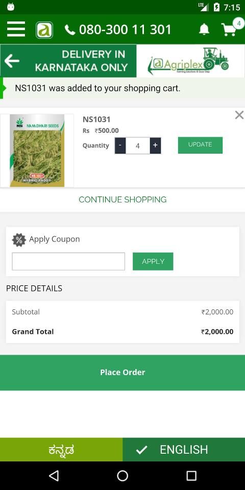 For the first time, Farmers get an option to choose wide variety of quality SEEDS, FERTILIZERS, PESTICIDES of Top Brands from our mobile application. At any point of time, Farmers can also call our HelpPoint center 080-61116333 to seek Free Agricultural advice.