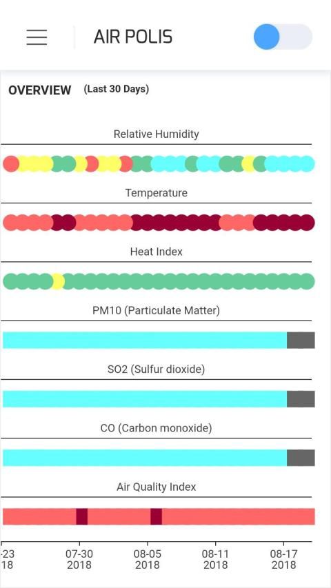 Catatan penting: Aplikasi ini tersedia dalam skala percobaan untuk semua warga dan pengunjung Thessaloniki secara gratis. Data kualitas udara termasuk polutan udara utama, seperti O3, NO2, SO2, CO dan PM10 dan suhu udara dan kelembaban relatif. Layanan tambahan adalah perhitungan real-time dari Indeks Kualitas Udara Eropa dan evaluasi musiman dari Indeks Panas selama musim panas. Auth tidak bertanggung jawab atas akurasi atau karakteristik data lainnya. Informasi kualitas udara yang disediakan hanya melayani tujuan penelitian. Karena stasiun pengukuran belum dikenakan tinjauan jaminan kualitas untuk menentukan keakuratannya, data dan hasil yang disajikan tidak dapat digunakan untuk aplikasi lain.