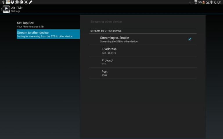Air Tivi + dapat secara otomatis mencari dan menetapkan alamat IP Set-top-box Anda, hanya jika server DLNA dalam mode aktif. Tapi Anda juga dapat memasukkan alamat IP Set-top-box secara manual.