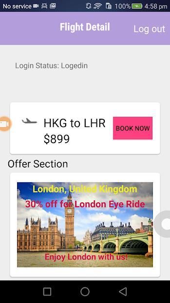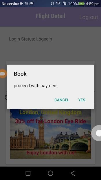 Booking flight screen