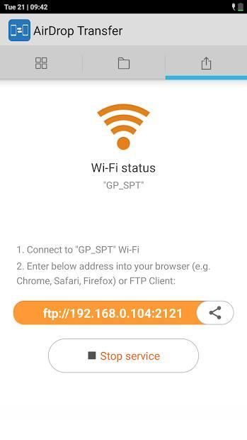 2.Start WiFi File Transfer by press "Start Service" button;