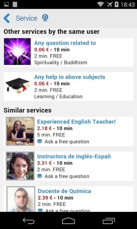 Hal ini memungkinkan Anda untuk membuat chatting konsultasi dengan dokter, pengacara, psikolog, guru bahasa, ahli komputer, dan banyak lagi. Ajukan pertanyaan secara gratis, hanya menghubungi mereka. Membeli dan menjual layanan online. Dapatkan uang menjawab pertanyaan pada ponsel Anda. Jika berjalan ponsel Anda pada Android 4.1 atau lebih tinggi Anda dapat membuat panggilan dan menjawab pertanyaan melalui video-chat. Mendapatkan 40 $ gratis dalam layanan dan konsultasi hanya untuk mendaftar.