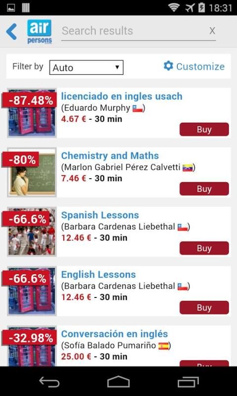 Profesional mencari. Memungkinkan Anda mencari setiap profesional dengan nama untuk menemukan apakah mereka menawarkan jasa mereka dalam AirPersons.