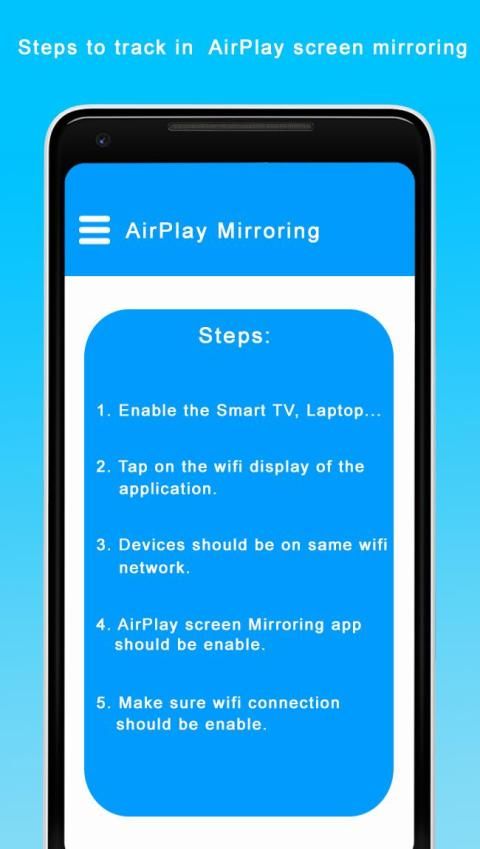 AirPlay Screen Mirroring & Mirror Phone To TV is the most advanced multiple wireless transmission protocol (Airplay/Chromecast/Miracast/DLNA/Receiver) receiver for Android. It allows you to use the local network connection (Wi-Fi/Ethernet) with your family and friends to experience the new fun of sharing screen from android to Ios .Airplay Mirroring application . Airplay Receiver