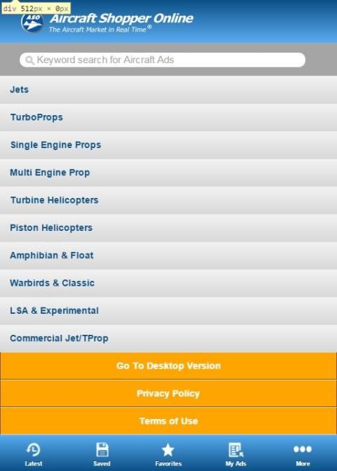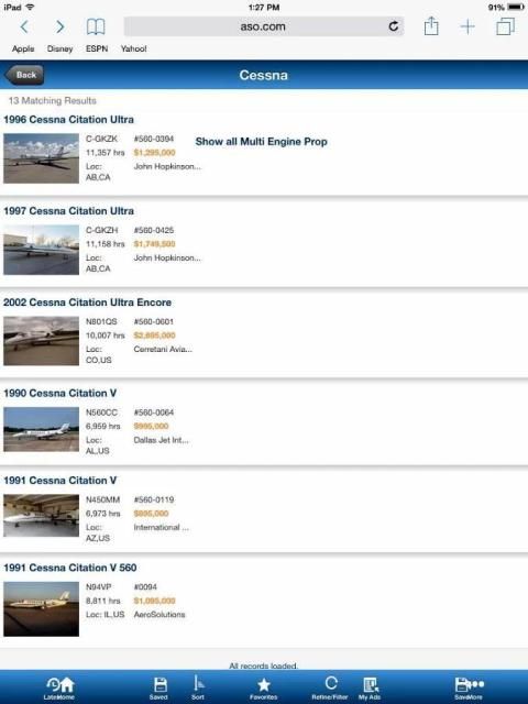 Pesawat Dijual iklan di ASO Mobile termasuk deskripsi pesawat, spesifikasi dan gambar penuh warna. Pembeli dapat menggunakan ASO BuyerResponse sistem ™ untuk segera menghubungi penjual.