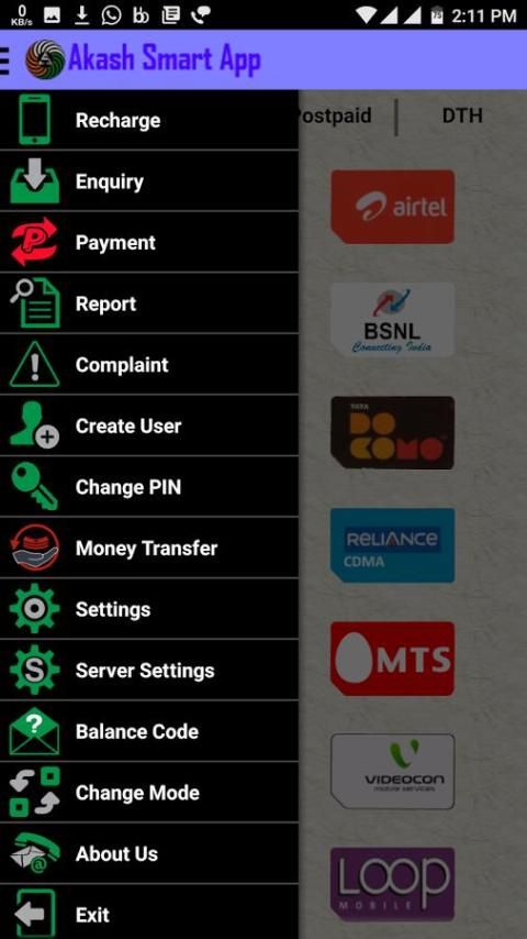 Akash Cerdas App menyediakan kenyamanan pengisian layanan mobile dan DTH prabayar Anda dari mana saja di dunia dan kapan saja, dengan SMS dan portel.