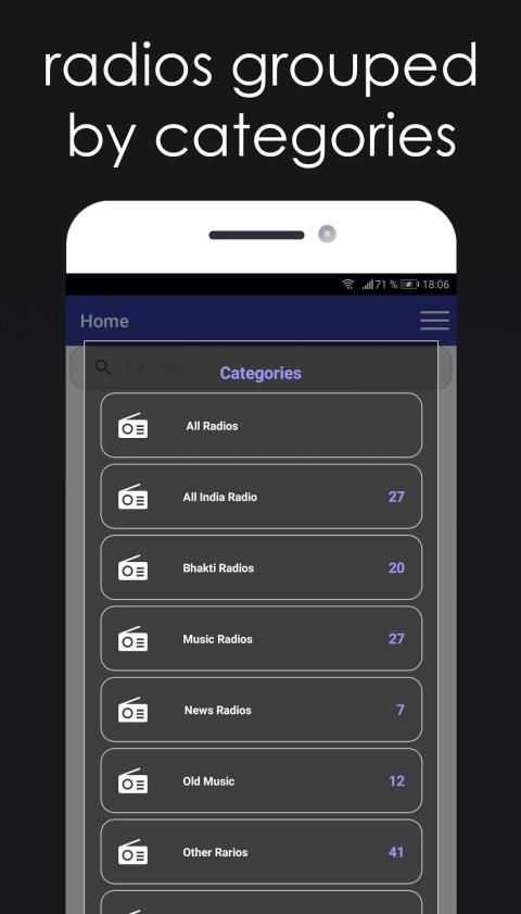 - Radios grouped by categories