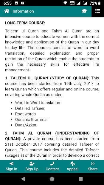 Untuk melakukan Taleem ul Quran dan Fahm Al Quran saja 2 hari dalam seminggu (Rabu dan Sabtu selama 2 jam untuk siswa reguler) dan online, sehingga kelompok sasaran (anak perempuan / wanita) akan menyerap