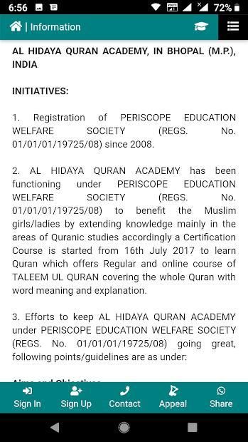 AL HIDAYA QUR’AN ACADEMY (AHQA) has been functioning under PERISCOPE EDUCATION WELFARE SOCIETY (REGS. No. 01/01/01/19725/08) to benefit the Muslim girls/ladies by extending knowledge mainly in the areas of Quran & Seerat-e-Nabi studies.